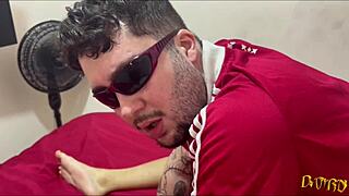 Nympho inked glasses-wearing latina step-sister begs step-brother for facial after creampie pounding
