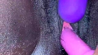 Creamy ebony teen's pussy pulses in explosive toy-driven orgasm