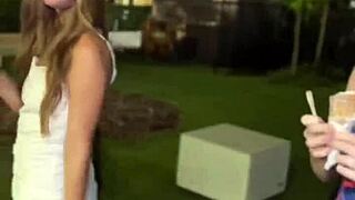 No Panties Mini Skirt Party Turns Wild. Hot Tight Shaved Pussy Girls Flash Outdoors at Barbeque.