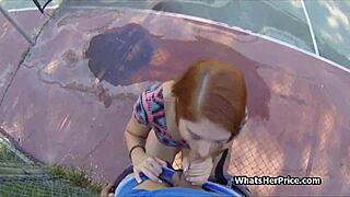 broke redhead teen trades tennis quickie for desperate cash payoff