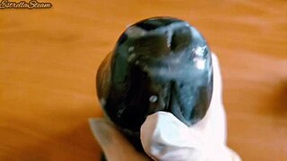 im jerking off this huge black dildo with gloves close up pov homemade fetish wet handjob