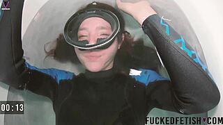 Skinny spandex girl dives slow underwater pool experience intense