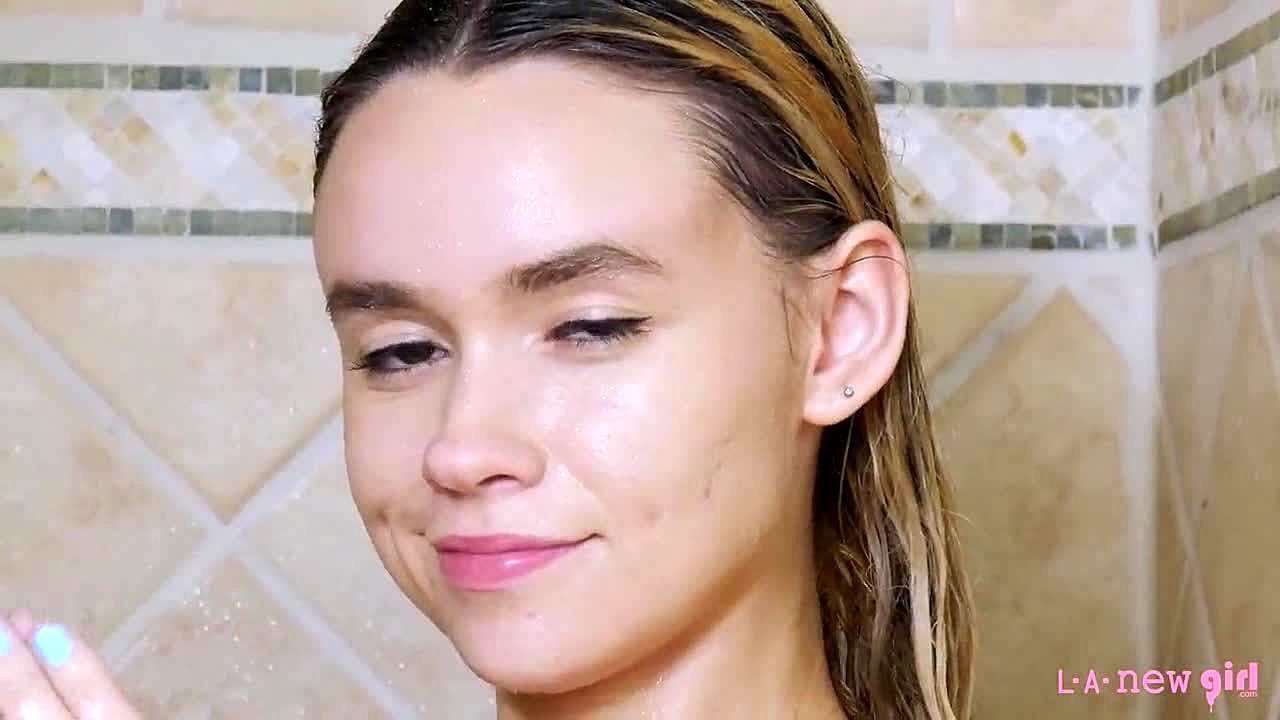 Super cute blonde teen gets naughty in steamy shower scene