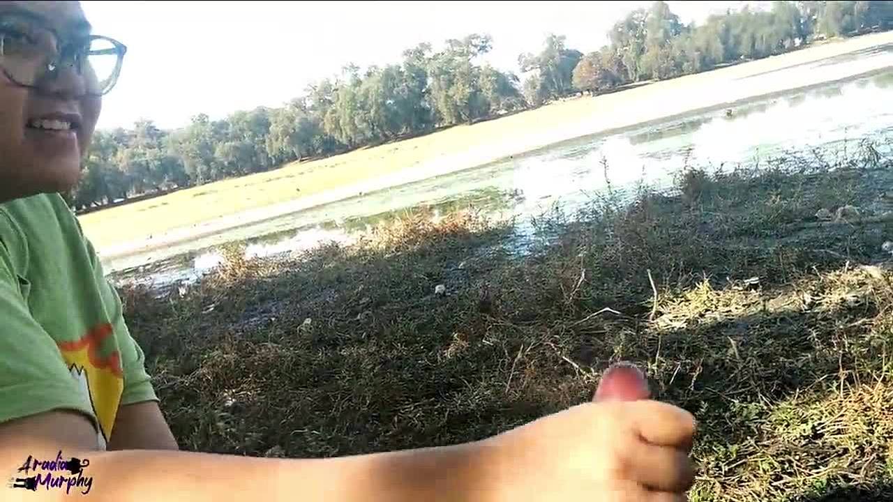 Asian girl gives handjob on nude beach in public