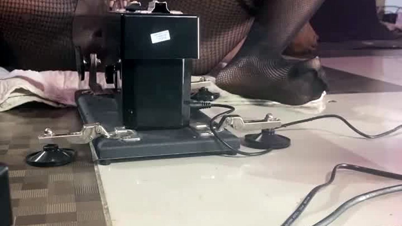 Tinee moans as her fat pussy gets gagged and stretched by the fuck machine.