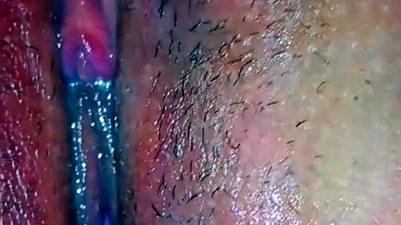 Hubby fingers wife's juicy hairy asian pussy up close before creampie